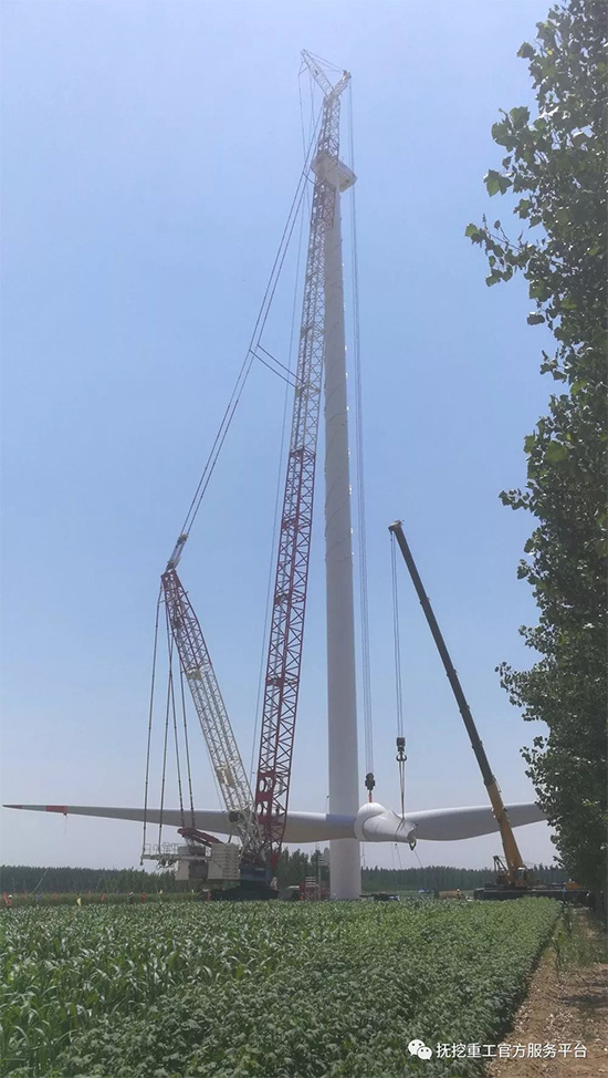 遼寧撫挖安基能源工程有限公司在北京航天·貴州電建  南宮300MW風(fēng)電場項目施工中,于2019年7月3日在河北省邢臺市南宮市完成首臺單機(jī)容量3.0MW、輪轂中心高度104米的風(fēng)機(jī)安裝,這既是我公司首臺高度更高 、重量更大 的3.0MW-140米風(fēng)機(jī)安裝,也是目前為止風(fēng)機(jī)廠家-金風(fēng)科技的 3.0MW-140米柔塔風(fēng)機(jī)批量吊裝施工的開始,為遼寧撫挖安基能源工程有限公司在風(fēng)電施工領(lǐng)域填寫輝煌的一筆。